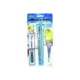 (More customer reviews)When I first saw this contraption, I was skeptical; but since I got it for $1.99, I figured if it didn't work I wouldn't be out much. This was a nice surprise. I was expecting it to be blue, but the one I got is a pale yellow. At first, my budgies, Jake and Stella didn't pay much attention to it. Honestly, I think Jake may have been a little afraid of it. When there was no activity with the holder after a few hours, I tried a new tactic. This thing works much better if you cram two millet sprays into it instead of one. It pushes the sprays up against the sides of the basket and makes access to the seeds much easier. Once they get the hang of eating out of it, the holder works great. It also solves the problem of Stella ripping the sprays apart for sheer entertainment. She would tear at the stem until it was completely bare, eating little or none of the seed. Poor Jakey didn't used to even get a chance to eat any of the millet, unless he picked it out of the bottom of the cage. This thing slows Stella down considerably and she doesn't guard it from Jake the way she would a bare spray. A great solution if you have a millet monster like I do!